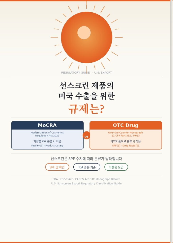 정리하자면, 선스크린 제품을 유럽 시장에 출시하기 위해서는 CPNP 등록을 통해 제품 정보를 공식적으로 신고하고, 제품 안전성을 입증하는 PIF를 준비해야 합니다. 또한 EU 화장품 규정에 따라 라벨에 필수 정보를 정확하게 표기해야 하며, 자외선 차단 제품 특성에 맞는 SPF 및 UVA 관련 표시 규정을 준수해야 합니다. 이러한 절차와 규정을 충실히 준비한다면 유럽 시장에서 선스크린 제품을 안정적으로 유통할 수 있습니다.